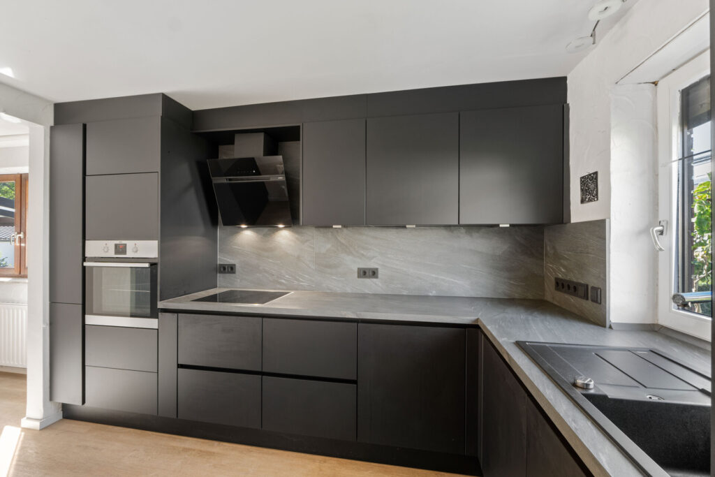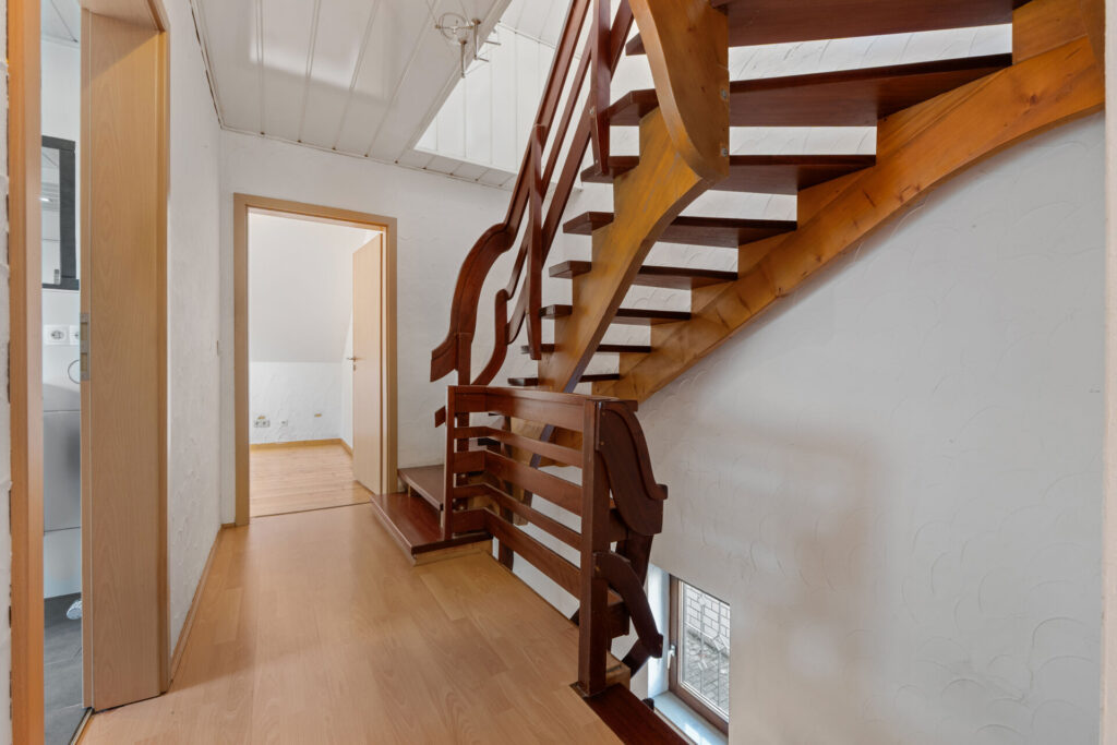 Das großzügige Erdgeschoss empfängt Sie mit einem einladenden Flur und einem praktischen Gäste-WC. Die offene Küche geht harmonisch in das Esszimmer über und schafft eine kommunikative Atmosphäre. Das separate Wohnzimmer bietet Raum für entspannte Stunden.