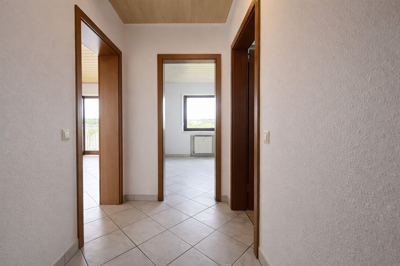 In allen Räumen ist ein heller Fliesenboden verlegt, der ein harmonisches Erscheinungsbild schafft und zugleich besonders pflegeleicht ist.